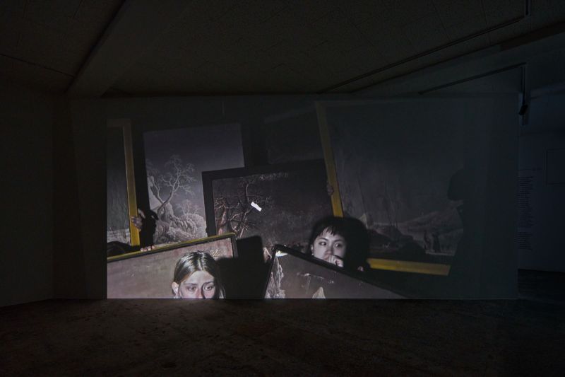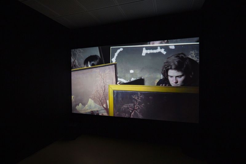 “Ten winter landscape paintings gently bob up and down against the night sky, held up by young women and men, whose earnest faces peer over the damaged surfaces of the canvases. This barely moving vignette is the focus of Aram Lee’s video A Dissonance of Landscapes (2019), whose location on a boat is discernible only from the sound of water and the distant hum of an engine. The moving vessel is rendered invisible, lending a certain abstraction to this unspoken conversation between static objects and people. We are left to imagine the dark stillness of the surrounding landscape and to scan the paintings’ imagery for clues about the significance of this obscure nocturnal event.